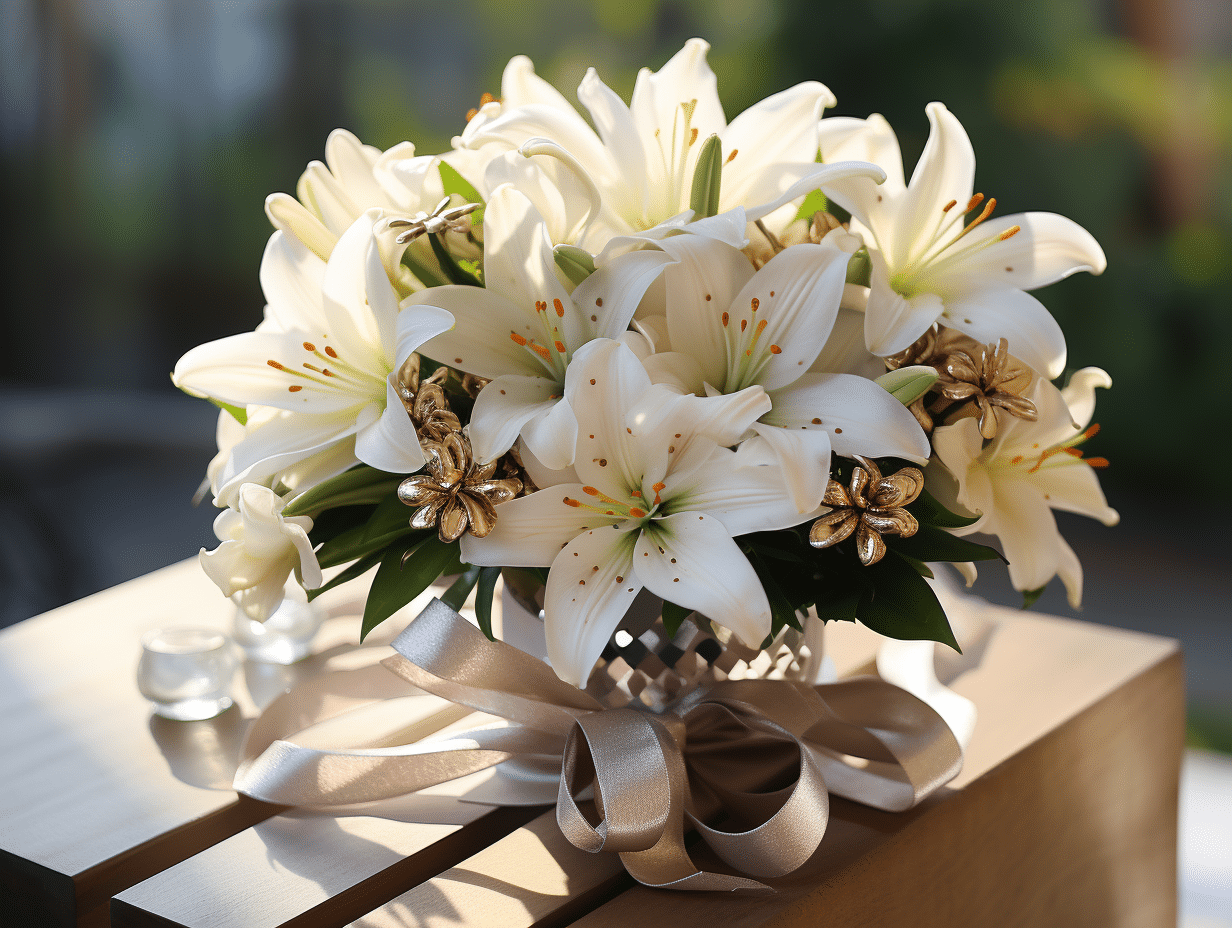 Les fleurs traditionnelles pour un deuil sont généralement des roses blanches, des lys blancs, des glaïeuls, des chrysanthèmes et des marguerites. Ces fleurs peuvent être utilisées pour créer des bouquets, des gerbes, des compositions florales et des coussins. Vous pouvez choisir des fleurs en fonction de la saison et du lieu de la cérémonie. Les fleurs peuvent être accompagnées d’un ruban de deuil ou d’un message spécial. De nombreux fleuristes proposent des arrangements floraux spéciaux pour les décès.