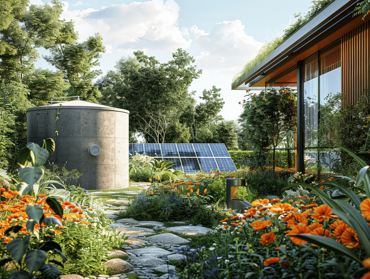 - Cuves de récupération d’eau de pluie : ces cuves collectent l’eau provenant des toitures pour une utilisation ultérieure dans le jardin ou pour le nettoyage extérieur.
